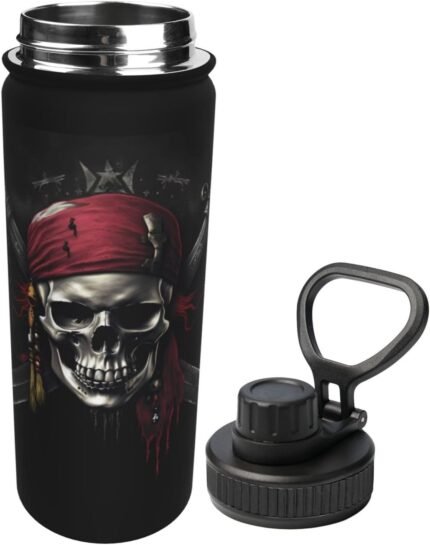 Pirates Flag 18 OZ Insulated Stainless Steel Bottles, Sports Water Tumbler with Lid Unisex Insulated Water Cup for Outdoor Sports Hiking Cycling