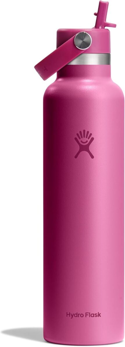 Hydro Flask Water Bottle – Insulated Stainless Steel – Straw Lid, Non Spill, Leakproof 24 Oz Trillium Pink