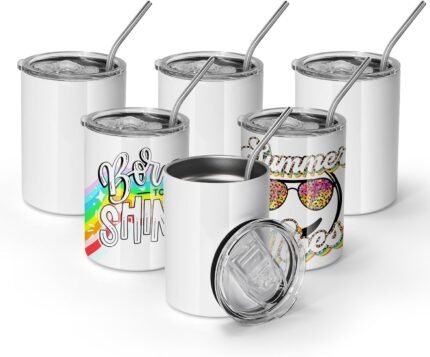 AGH 12 oz Sublimation Tumblers, 6 Pack Straight Tumbler with Lid and Straw, White Flat Cups