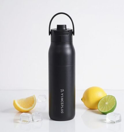VINCEPLUS Insulated Stainless Steel Bottle – Flip Top Staw Lid | BPA-Free, Refillable, and Insulated | Ideal for Fitness, Outdoor Adventures, and Everyday Use (JET BLACK, 23, Fluid Ounces)