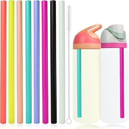 8pcs Color Replacement Straws for Owala FreeSip 24oz 32oz Bottle, Reusable Plastic Straws with Cleaning Cleaner Brush for Insulated Stainless Steel Water Bottle Tumbler Accessories