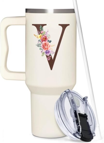Personalized Monogrammed 40oz Stainless Steel Tumbler With Handle – Custom Gifts For Women – Mom, Wife, Best Friend, Sister, Coworkers – Ideal For Birthday, Christmas, Mothers Day
