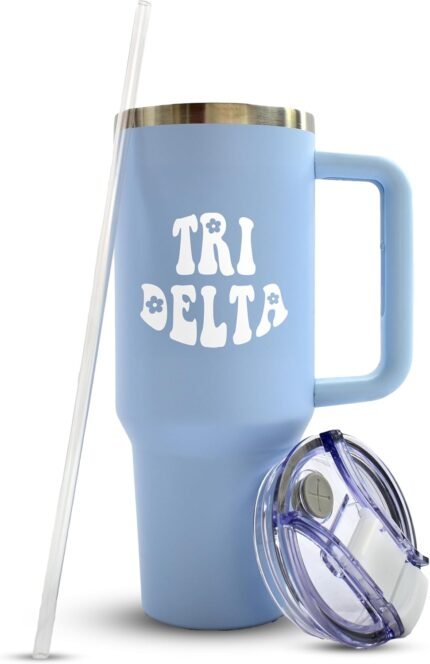 Sorority Shop Delta Delta Delta 40oz Tumbler with Handle – Best Friend Tumblers for Women – Cute Tri Delta Sorority Engraved Tumbler – Insulated Tumblers to Keep Your Drinks Cold or Hot for Hours