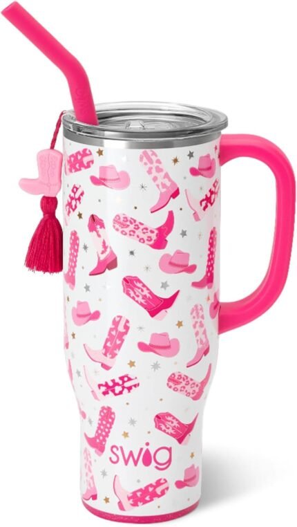 Swig Life 30oz Mega Mug, 30 oz Tumbler with Handle and Straw, Cup Holder Friendly, Dishwasher Safe, Extra Large Insulated Tumbler, Stainless Steel Water Bottle (Let’s Go Girls)