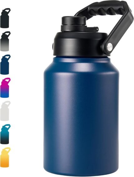 Insulated Half Gallon Jug, Large 64oz Stainless Steel Insulated Water Bottles with Handle, Double-Wall Vacuum Insulation for Construction Sites, Camping and Hiking, Blue