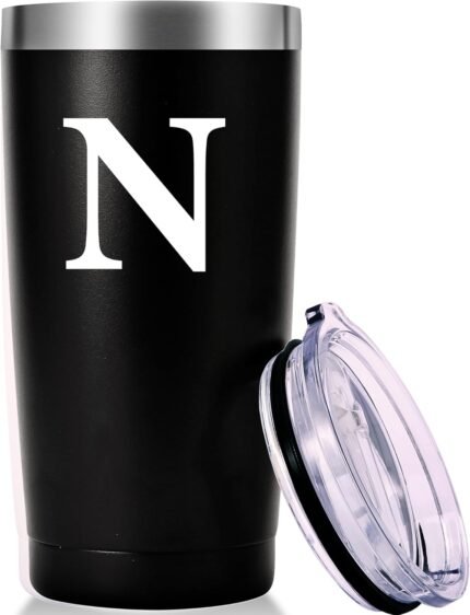 Personalized Initial Tumbler.Monogrammed Custom Initial Tumbler N.Unique Initial Tumbler Cup Gifts for Men Women. Novelty Birthday Christmas Party Graduation Wedding Gifts.(20oz Black)