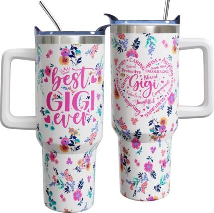 Gigi Mothers Day Gifts for Grandma from Grandkids, 40 oz Best Gigi Ever Cup Tumbler with Handle Lid and Straw