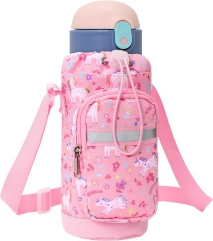 Water Bottle Carrier for Kids – Water Bottle Holder with Strap, Boys Girls Water Bottle Sling Bag for 10/12/14/16/18Oz Water Bottles Walking Hiking Camping