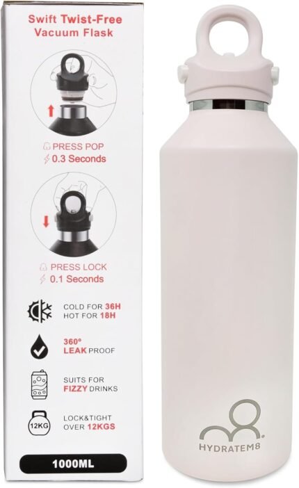 HYDRATEM8 34 oz Insulated Water Bottle: Twist-free Vacuum Stainless Steel Bottle with Leakproof Lid – Sweat-Proof & 36Hr Ice Retention – Anti-Scratch Coating Fit for Travel Gym Hiking