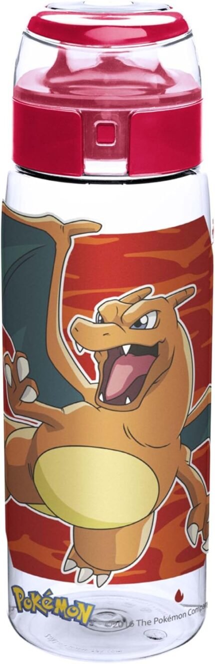 Zak! Designs Pokemon Reusable Tritan Plastic Water Bottle with Flip Top Cap, Featuring Charmander, Charmeleon, and Charizard BPA-Free and Break Resistant, 25 oz.
