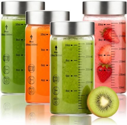 Price: (as of – Details) Product description Dual-Scale Design: This set includes 4 wide-mouth glass bottles of 10oz, featuring precise