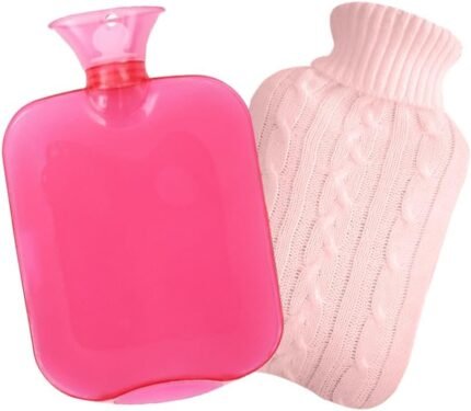 Hot Water Bottle with Knitted Cover,2L Hot Water Bag,Hand Warmer Bag,Hot and Cold Therapies for Sore Muscles,Menstrual Cramps,Neck and Shoulder Pain Relief,Great for Women,Childs (Pink)