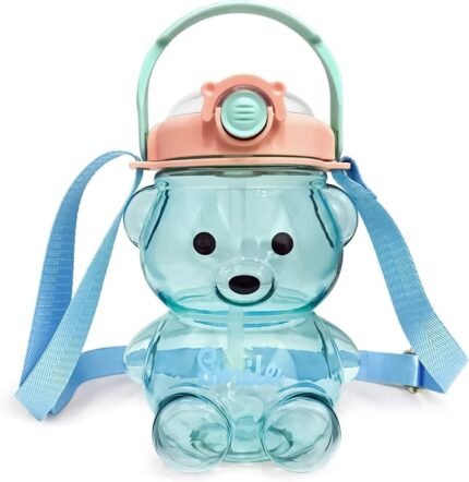 32oz Bear Straw Water Bottle Large 1L BPA Free Water Bottles with Removable Straw & Built in Carrying Loop, Adjustable & Removable Shoulder Strap, Leakproof Jug Non-Toxic Drinking Cups