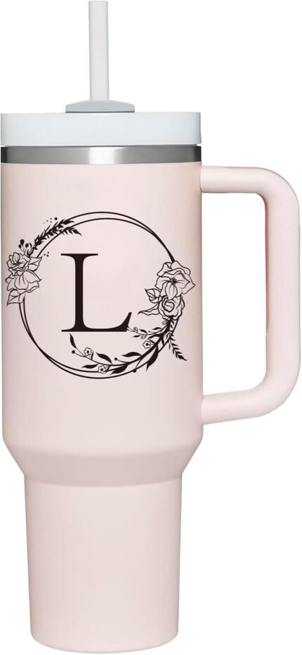 Personalized 40oz Tumbler Cup with Initials.Cup with Letter L 40oz Tumbler with Handle.Custom Tumbler Cup with Letter.Initial Monogram Tumbler Mug Gifts for Women Birthday Christmas.