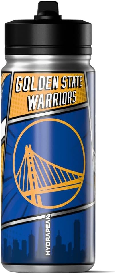 Hydrapeak x NBA Golden State Warriors 20 oz Stainless Steel Water Bottle, Officially Licensed Double Wall Insulated Sports Bottle with Straw Lid, Reusable Leakproof Gift for Kids & Adults