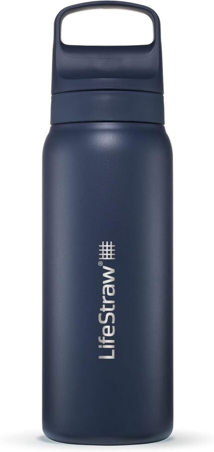 LifeStraw Go Series — Insulated Stainless Steel Water Filter Bottle for Travel and Everyday Use Removes Bacteria, Parasites and Microplastics, Improves Taste, 24oz Icelandic Blue