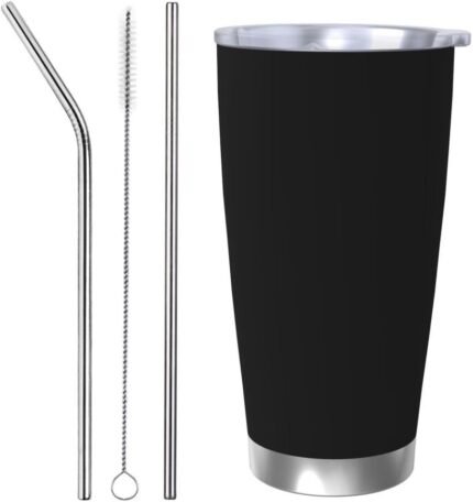 Personalized Photo 20oz Stainless Steel Tumbler,Custom Coffee Tumbler Cups With Lid And Strawstraw Vacuum Insulated With Text Photo Logo Solid Black