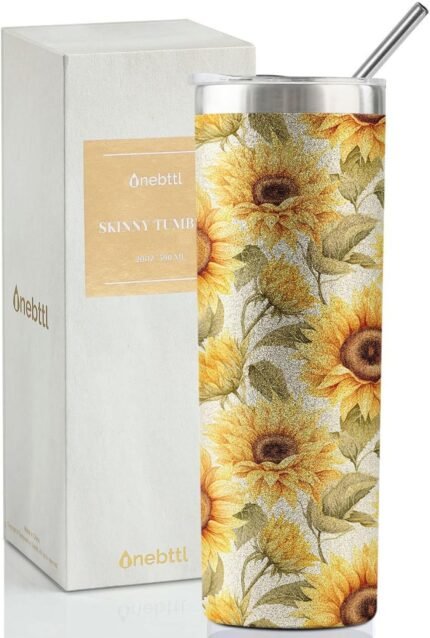 Onebttl Sunflower Gifts for Sunflower Lovers, 20oz Insulated Stainless Steel Tumblers with Lids and Straws, Perfect Gifts for Best Friend, Christmas, Birthday – Pattern
