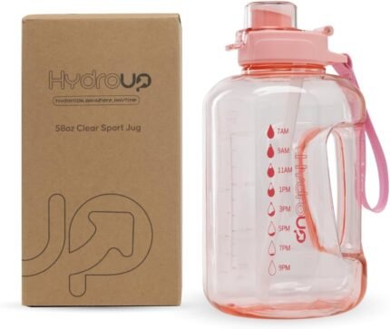 HYDROUP Sport Jug 58oz – Large Clear Plastic Water Jug with 2-in-1 Straw & Chug Lid, Motivational Time Markers, BPA-Free, Leakproof