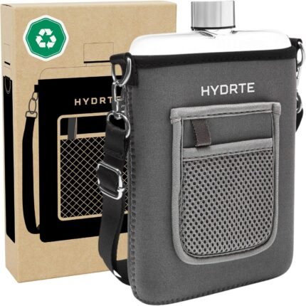 Travel Mini Water Bottle with Strap & Sleeve – 18 oz BPA-Free Slim Flat Reusable Water Bottle, Leak Proof (Slate Grey)