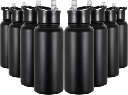 32 oz Insulated Water Bottle Bulk 8 Pack, Stainless Steel Sports Water Bottles with Straw Lid & Wide Mouth Lids, Double Walled Vacuum, Leak Proof, Black