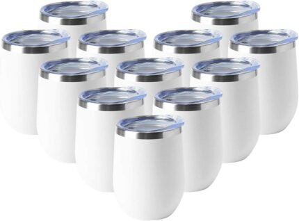 HASLE OUTFITTERS 12oz Wine Tumbler with Lid Stemless Wine Glasses Double Wall Vacuum Travel Mugs stainless steel Coffee Cup for Cold & Hot Drinks Wine Coffee Cocktails Beer 12 Pack White