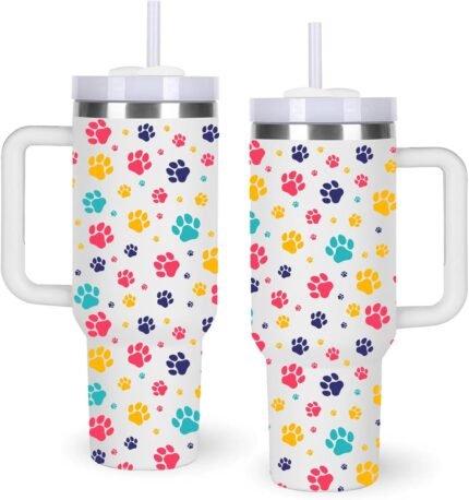Price: (as of – Details) 40oz Paw Print Tumbler with Handle Gifts for Women.Paw Print Lover Cups Tumbler Gifts for