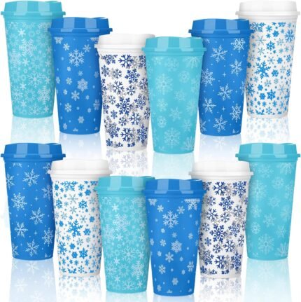 Pickmesh 12 Pack Winter Reusable Coffee Cup 16 oz Winter Tumblers with Lid Plastic Coffee Mug Travel Mug Thanks Gifts for Hot and Cold Drinks(Snowflake)