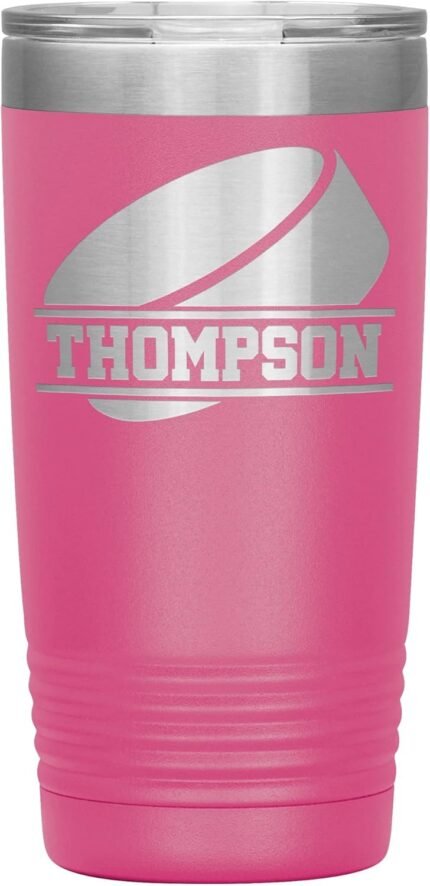 Personalized Hockey Tumbler With Name – Hockey Cup – 20oz Insulated Engraved Stainless Steel Hockey Travel Mug – Hockey Gift Pink