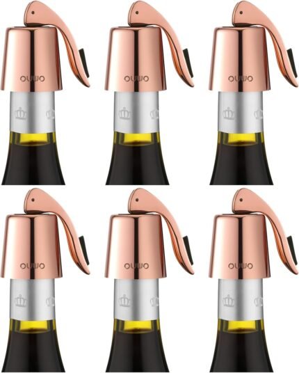 Stainless Steel Wine Bottle Stoppers – Plug with Silicone Toppers – Reusable, Leak-Proof, Keeps Wine Fresh Accessories – RoseGold 6 Pack