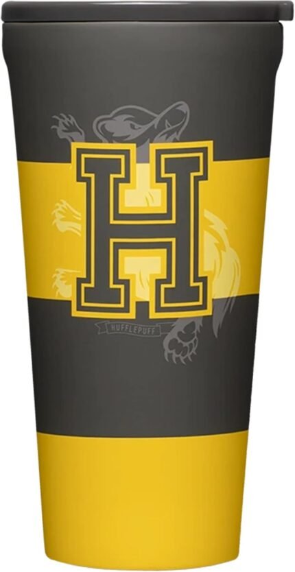 Corkcicle Harry Potter Hufflepuff Travel Tumbler, Insulated Water Bottle with Lid, Spill Proof for Wine, Coffee, Tea, and Hot Cocoa,16 oz