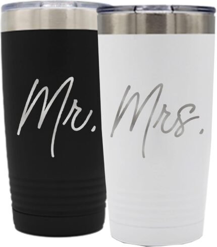 My Personal Memories Mr and Mrs Set of 2 Stainless Steel Powder Coated Double Wall Vacuum Insulated Travel Tumbler (Black Mr White Mrs 20 oz Set of 2)