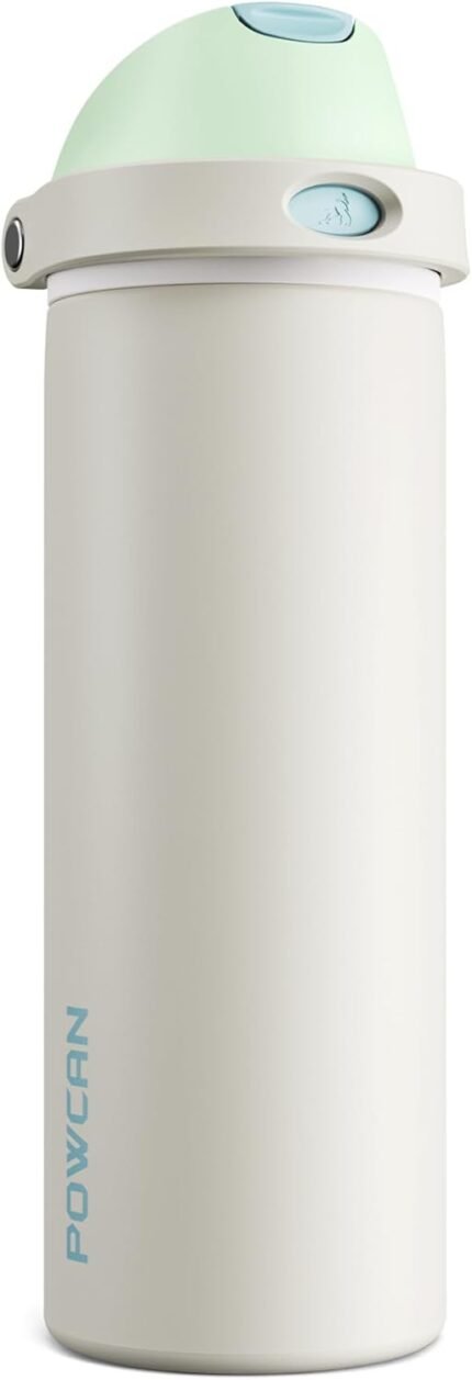 POWCAN 24 oz Insulated Water Bottle: 2-in-1 Push-Button Spout & Quick-Flip Straw, Leakproof, Cold 24Hrs, Fits Car Cup Holder, Stainless Steel Water Bottle for Sports, Travel, School, Gift (Oat Mousse)