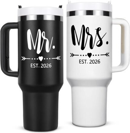 Qtencas Mr and Mrs Gifts, Wedding Gifts for Couples 2026, Mr & Mrs Insulated Tumblers Set, Anniversary Engagement Wedding Gift for Newlyweds Couples Bride and Groom (Black & White)