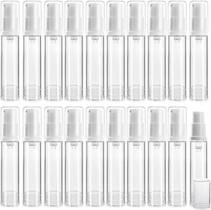 20Pcs 10ml/0.34oz Airless Pump Bottle Refillable Plastic Airless Vacuum Dispenser Portable Clear Cosmetic Sample Vial Container Jars for Lotion Emulsion Toiletries Liquid Foundation