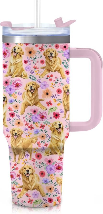 Golden Retriever Gifts for Women, 40oz Stainless Steel Insulated Tumbler Travel Mug Cup with Handle Straw, Gifts for Dog Mom Dog Lover