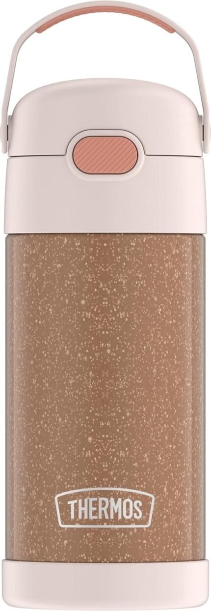 THERMOS FUNTAINER 12 Ounce Stainless Steel Vacuum Insulated Kids Straw Bottle, Glitter Rose Gold