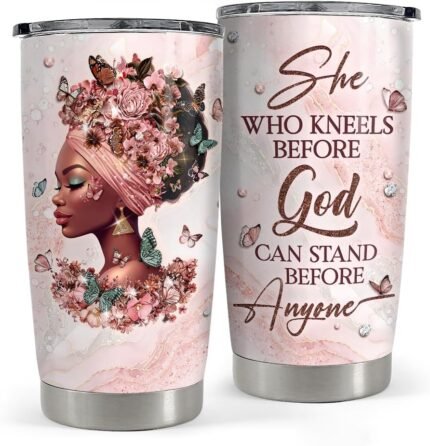 SANDJEST Black Woman Tumbler 20oz Stainless Steel Insulated Coffee Travel Mug Cup for Women Girls Gifts for Birthday Christmas