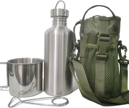 Dumatc Survivor 3-in-1 Outdoor Canteen Kit – 42oz Single Wall Water Bottle with 24oz Nesting Camping Cup & Carrying Bag | 304 Stainless Steel | Wide Mouth Design | Outdoor Survival Bushcraft Gear