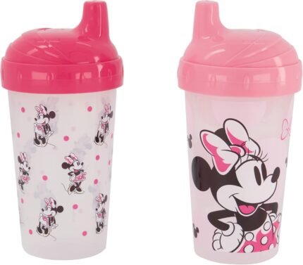 Disney Toddler Sippy Cups for Girls| 10 Ounce Minnie Mouse Sippy Cup Pack of Two with Straw and Lid | Durable Blue Leak Proof Travel Water Bottle for Toddlers