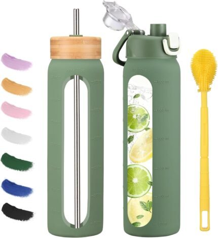 Price: (as of – Details) From the brand Stay Hydrated Anywhere Anytime Glass Water Bottles 33 oz Glass Water Bottles