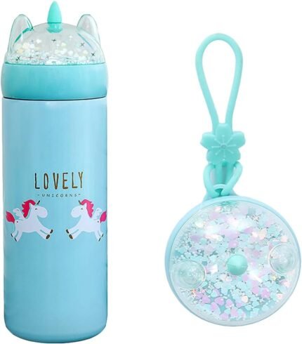 KINIA 12 Oz UNICORN GLITTER 18/8 Stainless Steel Double Wall Vacuum Insulated Kids Water Bottle – Leak Proof with BPA FREE Multi-Color Sparkling Glitter Top (Unicorn Blue)