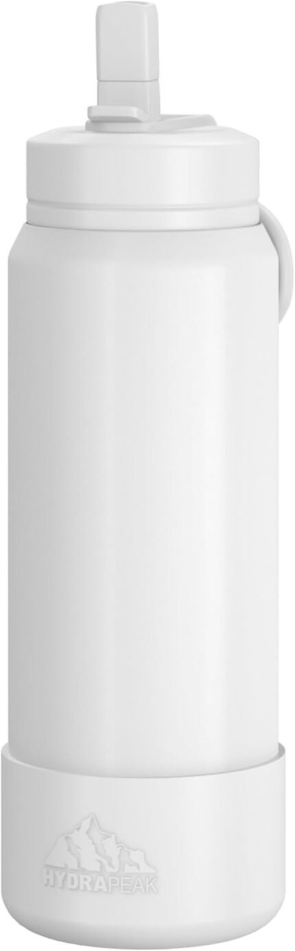 Hydrapeak 26oz Sport Insulated Water Bottle with Straw or Chug Lid, Leak & Spill Proof, Keeps Drinks Cold for 24 Hours, Hot for 12 Hours, Premium Stainless Steel Water Bottles (26oz, White)