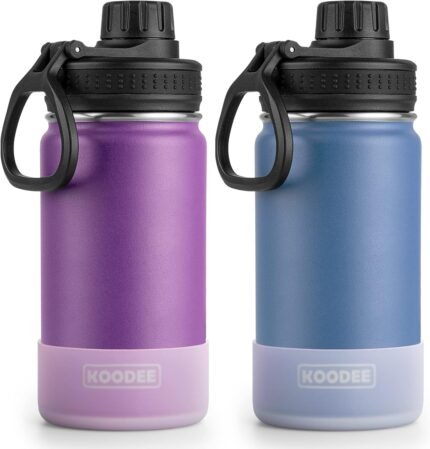 koodee Small Water Bottle 2 Pack-12 oz Stainless Steel Vacuum Insulated Sports Water Bottle with Leakproof Spout Lid (Purple- Royal Blue)