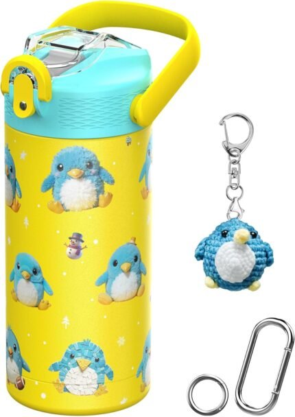 MYFOREST 14oz/400ml Insulated Kids Water Bottle, Odor-Free Surgical Grade Liner, Dishwasher-Safe, Name Spot, Soft Sipper (Penguin)