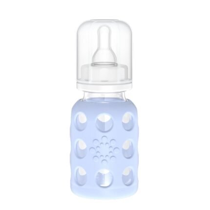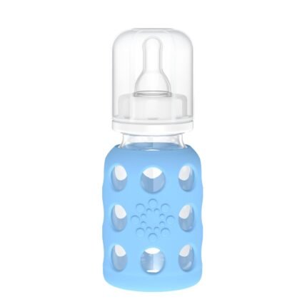 Lifefactory 4-Ounce BPA-Free Glass Baby Bottle with Protective Silicone Sleeve and Stage 1 Nipple, Sky Blue