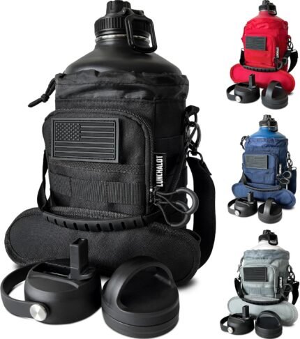 Hydro Gallon® Tactical – Insulated 1 Gallon Water Bottle Jug, Military Grade Sleeve. Large Stainless Steel Vacuum Metal Thermos Growler. Wide mouth, Shoulder Strap, MOLLE, Pockets, Handle. 128oz