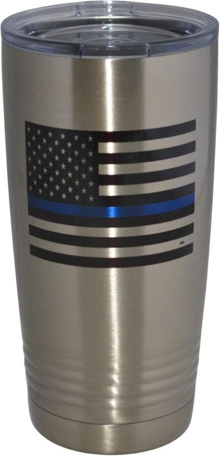 Rogue River Tactical Thin Blue Line Flag Police Officer 20 Oz. Travel Tumbler Mug Cup w/Lid Vacuum Insulated Law Enforcement PD Gift