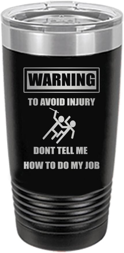 Rogue River Tactical Funny Warning Avoid Injury Job Large 20 Ounce Travel Tumbler Mug Cup w/Lid Sarcastic Work Gift For Boss Manager or Supervisor Black