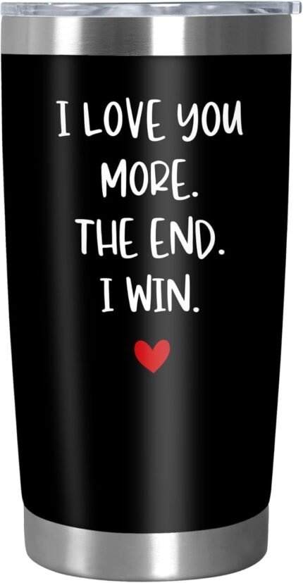 TEEZWONDER Valentines Day Gifts for Him Men – I Win Black Stainless Steel Insulated Coffee Tumbler with Lid 20 oz – Anniversary Birthday Couple Gifts for Him Husband Boyfriend, Tumbler for Men